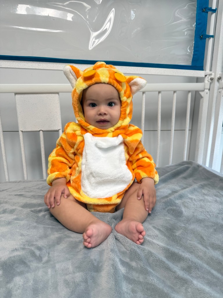 The day began with the hospital child life specialist dropping off some Halloween costumes for Zeke to choose from. We got the choice between a hotdog and giraffe. 😅 See picture below for what we chose!